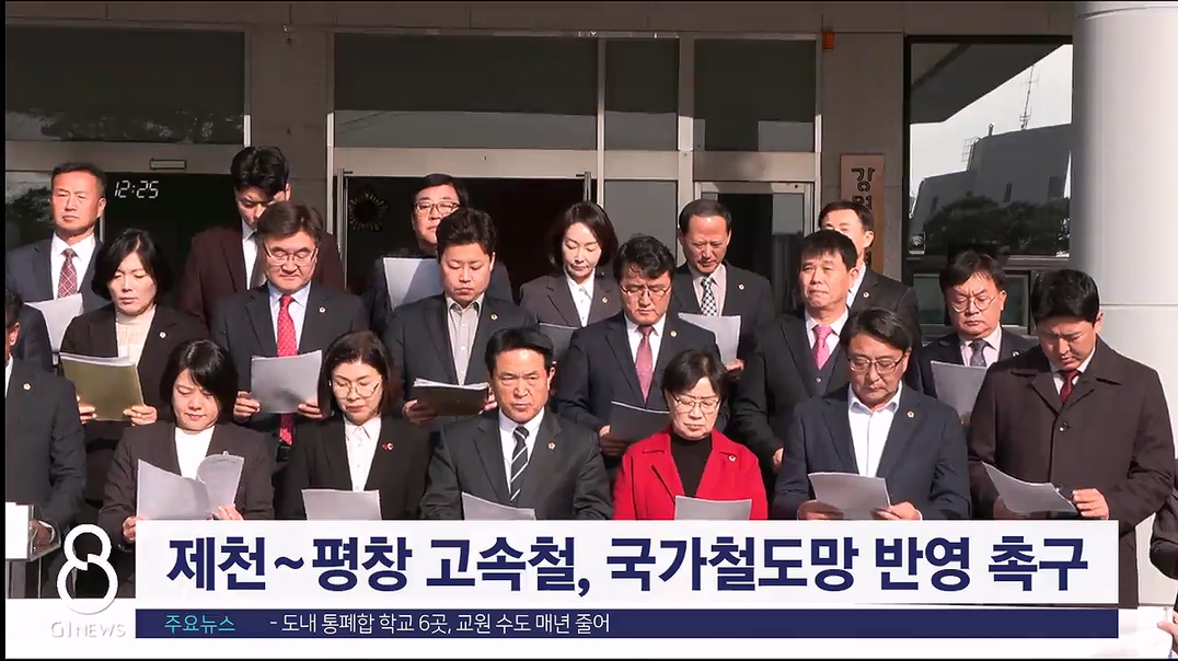 도의원들은 제천에서 평창 고속철도사업을 제5차 국가철도망 계획에 반영해달라는 건의문을 비롯한 3개 건의문을 발표하며,