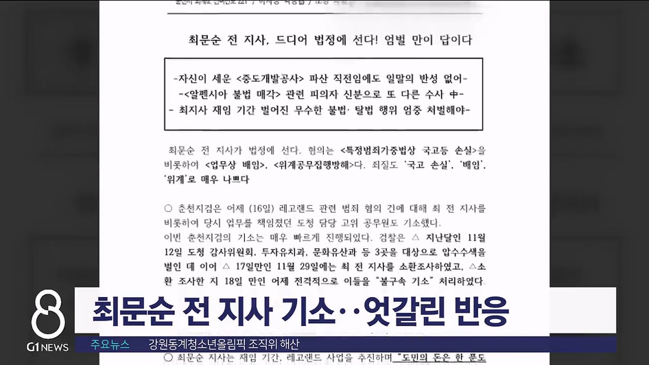 춘천지검이 레고랜드 관련 범죄 혐의 건에 대해 최문순 전 지사를 기소한 것과 관련해 도내 시민단체와 정치권이 엇갈린 논평을 내놨습니다.