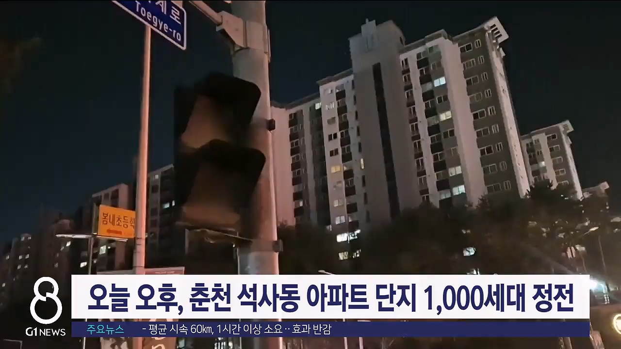 오늘(18일) 오후 6시 16분쯤 춘천 석사동 인근 아파트 단지에서 정전이 발생해 1,000세대 주민들이 불편을 겪었습니다.