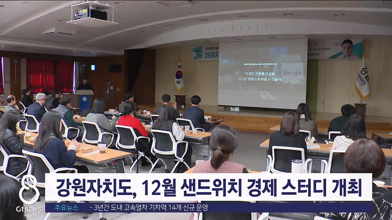 강원자치도가 오늘(18일) 도청 별관 4층 대회의실에서 올해 마지막 '샌드위치 경제 스터디'를 진행했습니다.