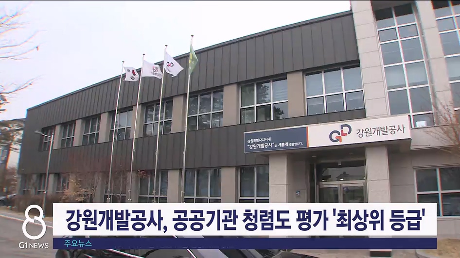 강원개발공사는 '2024년 국민권익위원회 공공기관 청렴도 평가'에서 2등급을 받아 전국 도시개발공사 중 최상위 등급을 달성했다고 밝혔습니다.