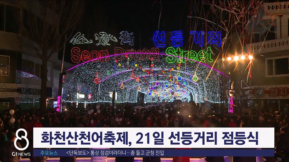 선등거리에는 지난 1년 간 화천지역 어르신들이 손수 제작한 형형색색의 산천어등과 LED 조명 수만여 개가 설치됐습니다.
