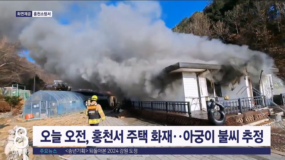 오늘 오전, 홍천서 주택 화재..아궁이 불씨 추정