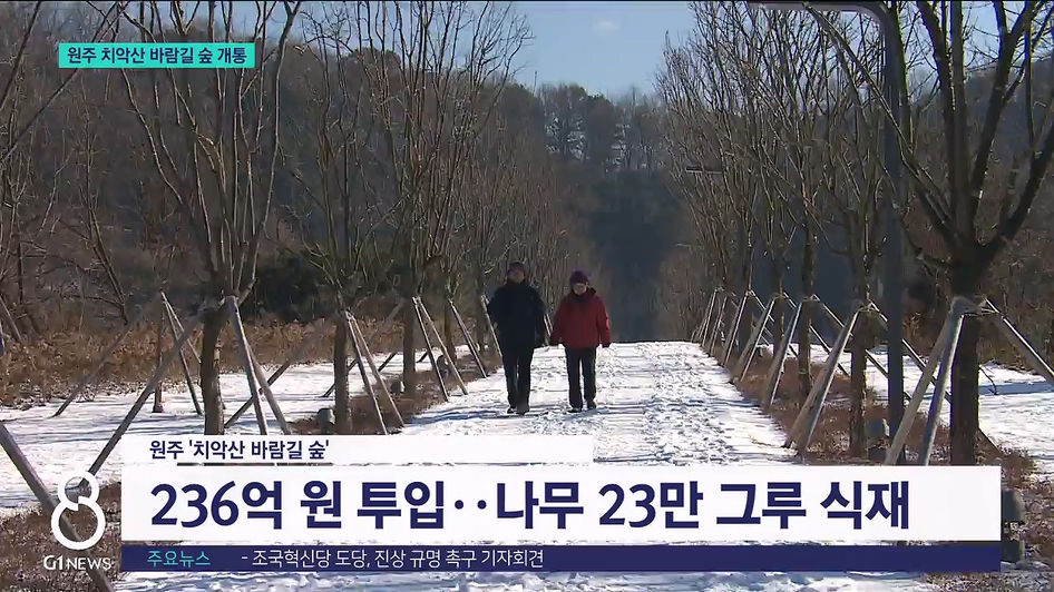 내년 6월에는 원주역과 우산 철교 인근 1km 구간의 숲길 조성도 마무리 될 예정입니다.
