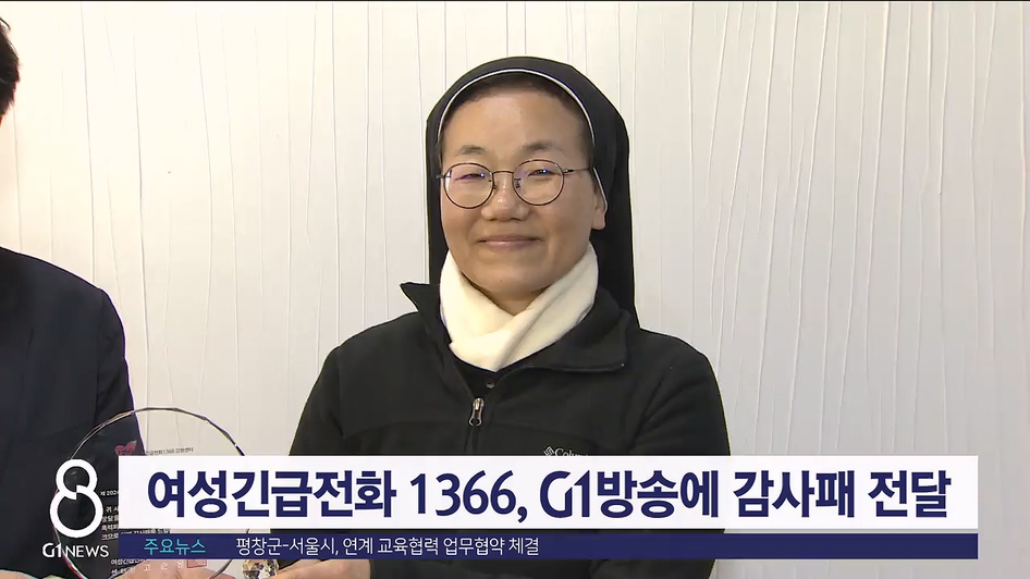 여성긴급전화 1366 강원센터가 오늘 폭력 피해 예방과 근절, 여성 권익 증진에 노력한 공로로 G1방송에 감사패를 전달했습니다.