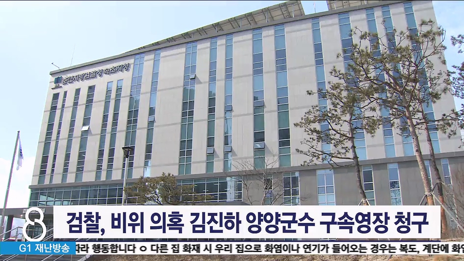 춘천지검 속초지청은 청탁금지법 위반, 뇌물수수, 강제추행 등의 혐의로 김진하 양양군수에 대한 구속영장을 청구했다고 밝혔습니다.