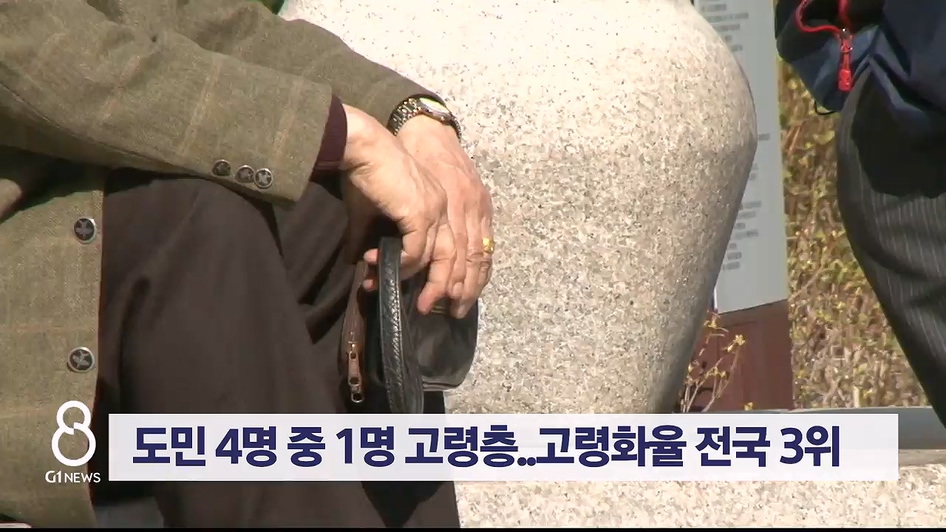 행정안전부의 주민등록인구통계에 따르면, 도내 65세 이상 인구는 38만 4천 5백여 명으로 전체 인구 152만 명 중 25.3%에 달해 전남과 경북의 뒤를 이었습니다.