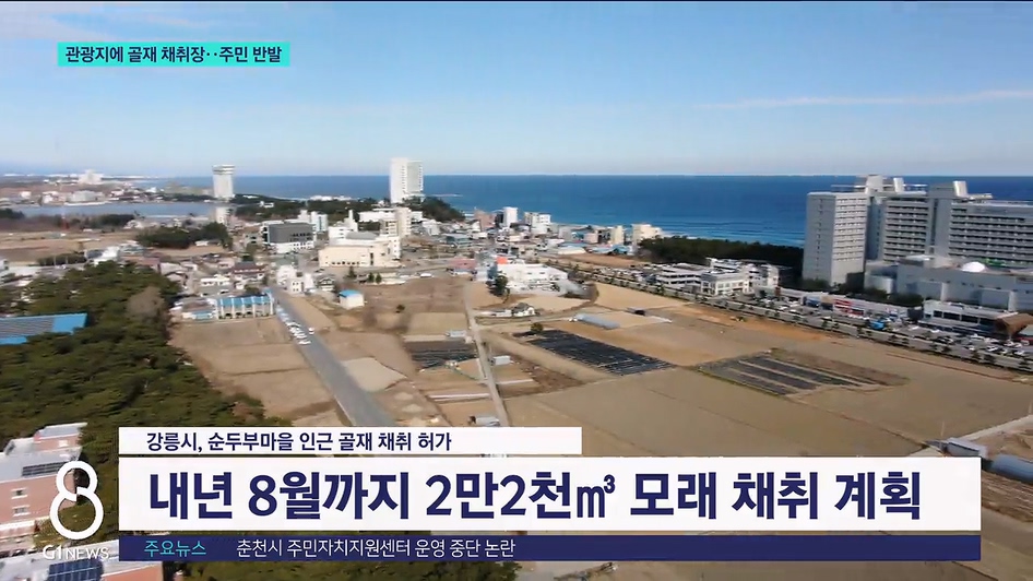 "유명한 곳이거든요 두부를 포함해서. 그런데 주민 동의 없이 전 세계인이 찾아오는 곳에 골재장 허가가 났다는 것에 대해서 주민들이 강릉시 행정에 많은 의구심을 갖고 있는 상태입니다."