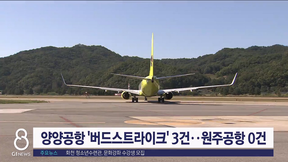 지난 2019년부터 올해 8월까지 5년 8개월간 버드 스트라이크 발생건 수는 원주공항 0건, 양양공항 3건으로 집계됐습니다.