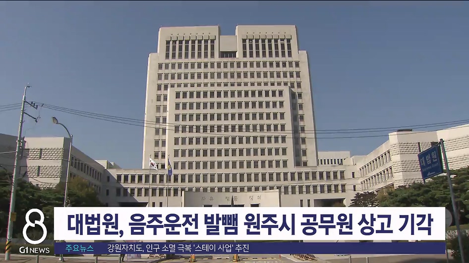 법조계에 따르면 대법원은 음주운전 혐의를 받는 원주시 소속 공무원 A씨의 상고를 기각했습니다.