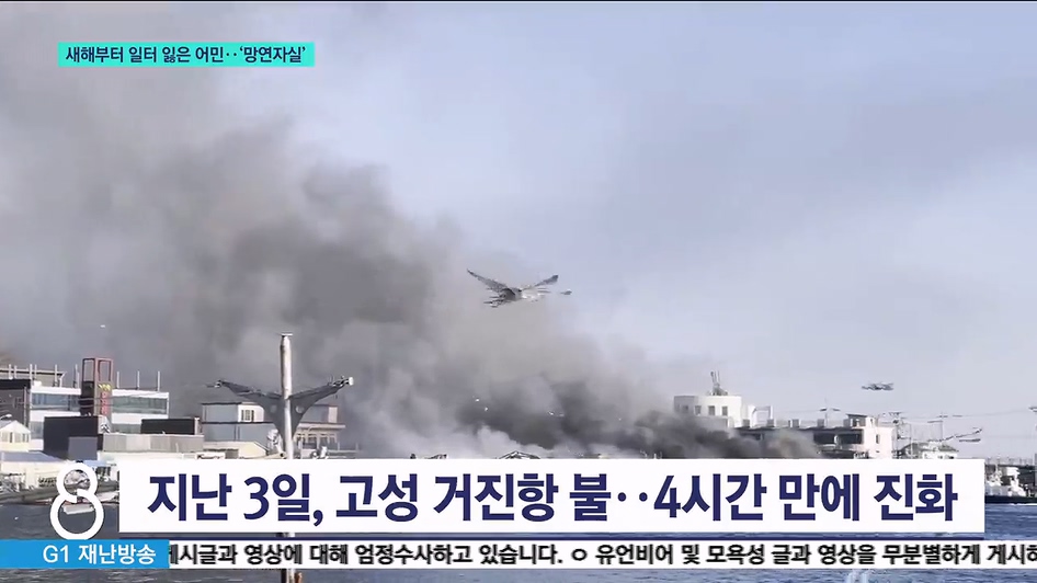 지난 3일 고성 거진항에서 큰 불이 나면서 일대에 있던 어민 작업장과 창고가 모두 불에 탔습니다.
