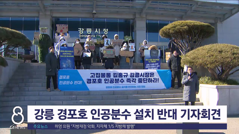 '강릉 경포호 인공분수 설치를 반대하는 시민 모임'이 기자회견을 열고, 강릉시의 사업 중단을 촉구하고 나섰습니다.