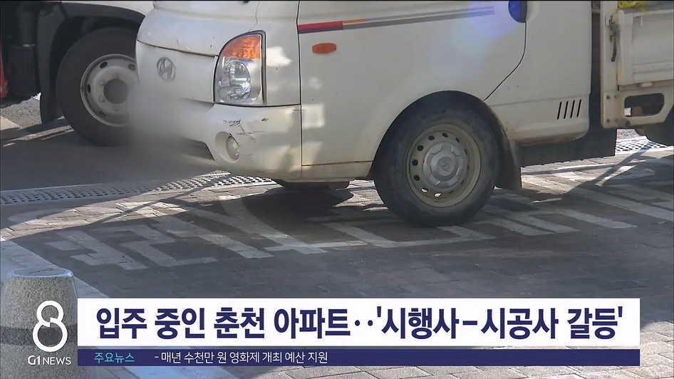 입주가 진행 중인 춘천의 한 아파트 단지가 시행사와 시공사간 공사대금 갈등으로 입주가 지연되는 등 논란이 일고 있습니다.