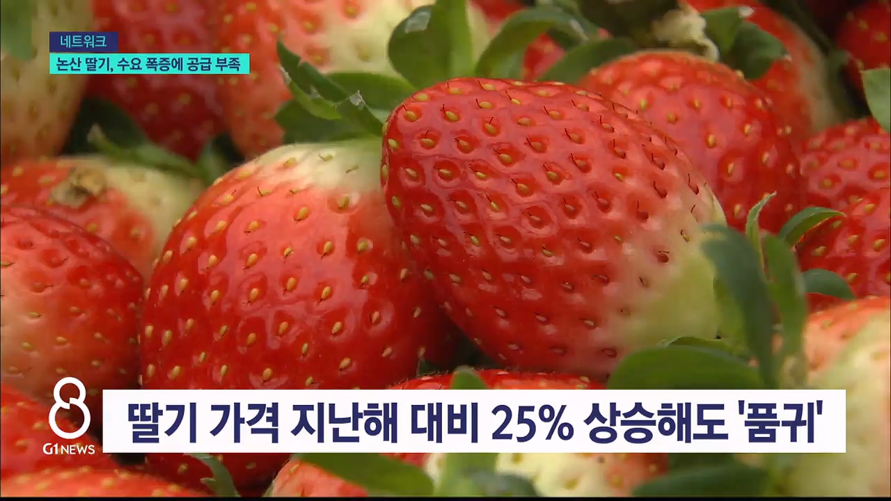 이같은 공급 부족은 동남아를 비롯한 해외수출시장이 확대되고 있는 가운데 제과제빵과 커피프랜차이즈, 호텔업계에서 겨울딸기 사용량이 늘고 있기 때문으로 풀이됩니다.