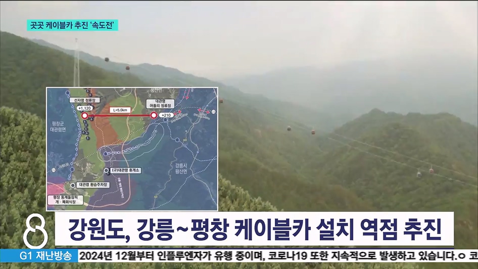강원자치도가 설악산 오색 케이블카에 이어 역점 추진 중인 케이블카 설치 구간은 강릉에서 평창.