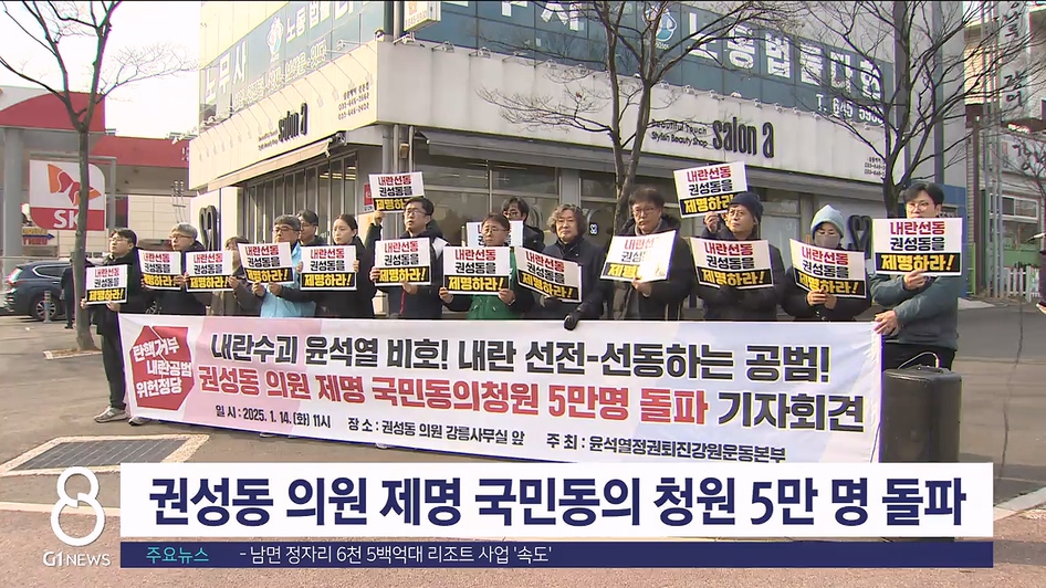 윤석열정권 퇴진강원운동본부는 국민의힘 권성동 국회의원 강릉 사무실 앞에서 기자회견을 열고 권 의원의 의원직 제명을 촉구했습니다.