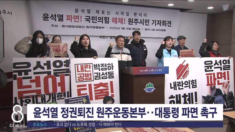 윤석열정권퇴진 원주운동본부는 오늘(16일) 원주시청 브리핑룸에서 기자회견을 열고 윤석열 대통령 파면을 촉구했습니다.