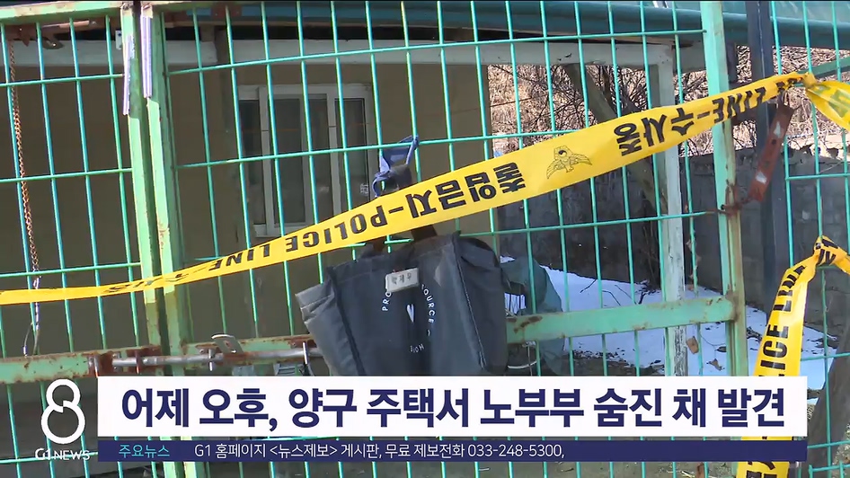 어제(16일) 오후 4시 10분쯤 양구군 양구읍의 한 주택에서 노부부가 숨진 채 발견됐습니다.