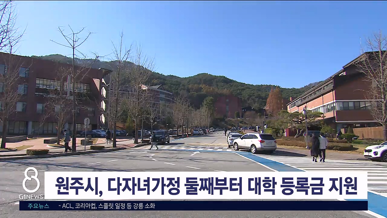 원주시가 다자녀가정의 경제적 부담 완화를 위해 대학등록금 지원에 나섭니다.