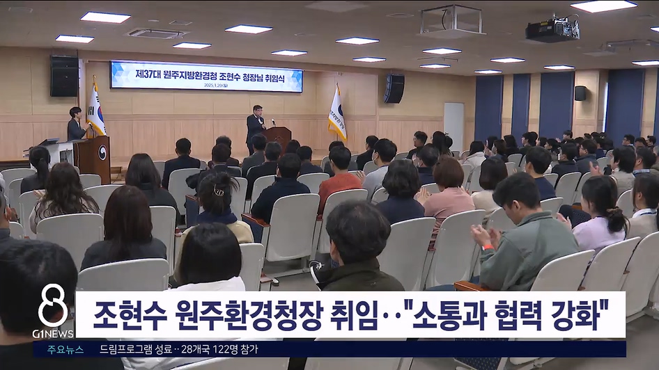 조현수 원주지방환경청장 취임식이 오늘(20일) 임직원들이 참석한 가운데 본청 대강당에서 열렸습니다.