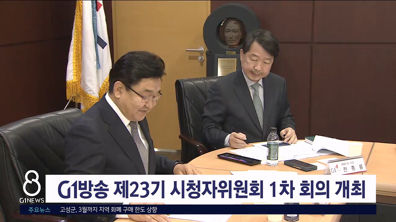 G1방송 제23기 시청자위원회 1차 회의가 오늘(21일) 각계 시청자위원들이 참석한 가운데 G1방송 대회의실에서 열렸습니다.
