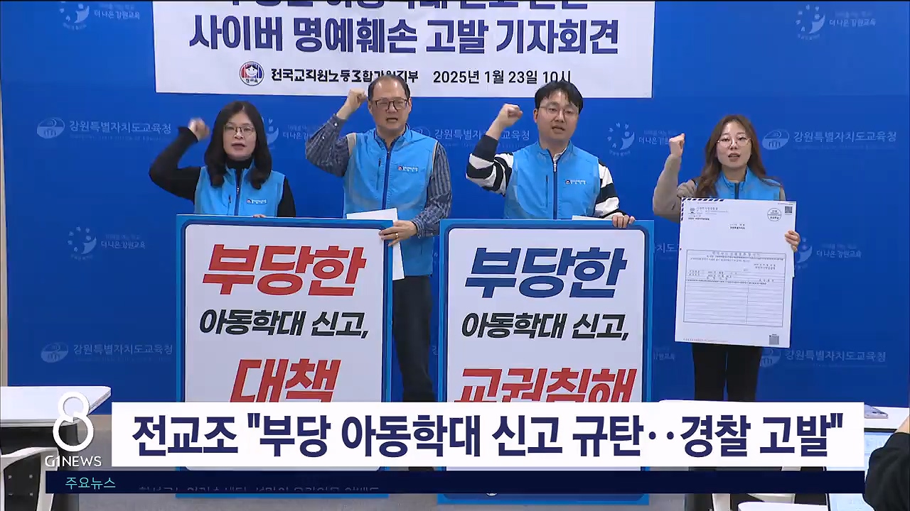 전국교직원노동조합 강원지부가 오늘(23일) 기자회견을 열고 "부당한 아동학대 신고가 만연한 상황에도 도교육청이 별 다른 대책을 마련하지 않고 있다"고 규탄했습니다.