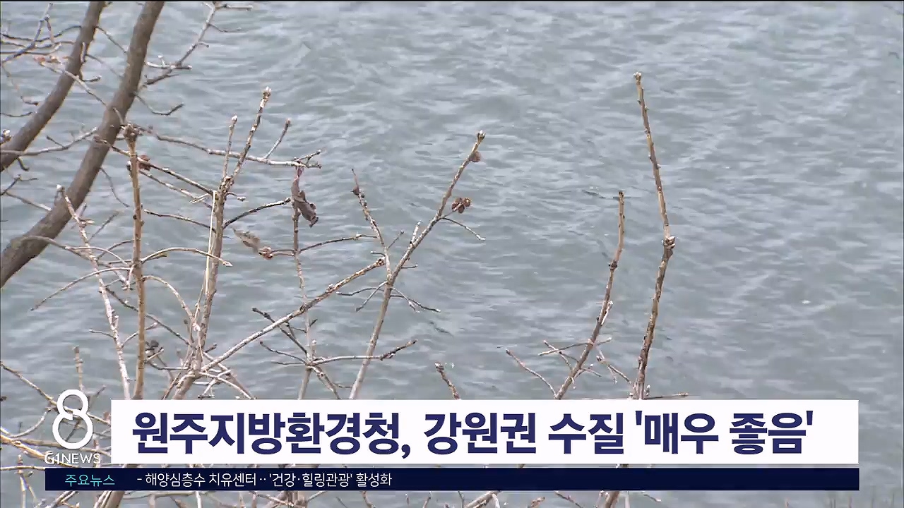 원주지방환경청이 강원권과 충북권의 하천 및 호소 수질을 조사한 결과, 모두 87개 지점 중 64개 지점의 수질이 1등급인 '매우 좋음' 수준으로 나타났습니다.