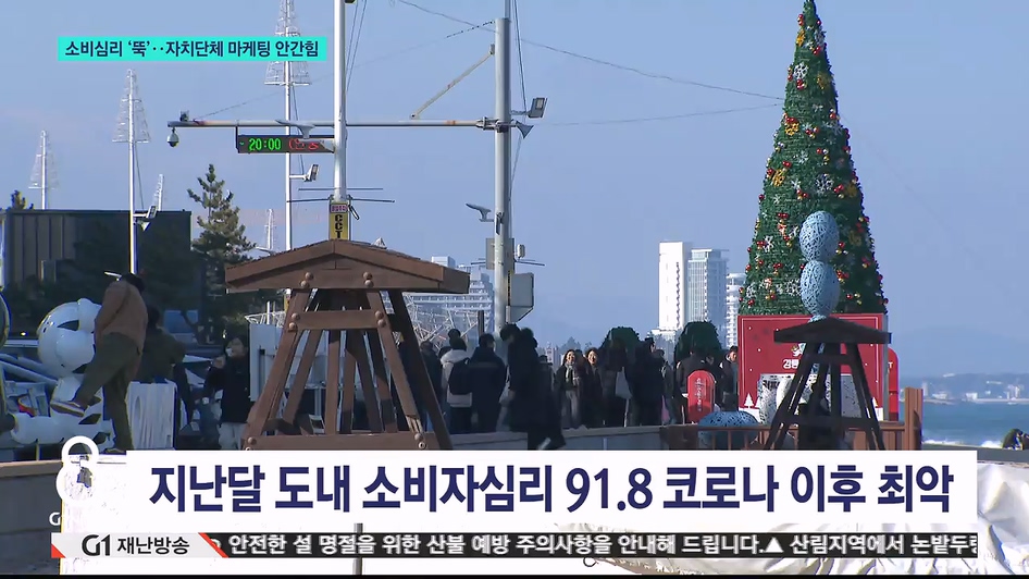 지난달(12월) 도내 소비자심리지수는 91.8로, 평균 지표인 100 선이 무너지면서 코로나19 시기였던 2020년 3월 이후 가장 큰 폭으로 떨어졌습니다.