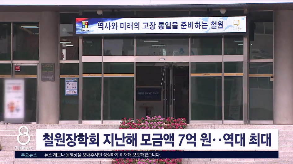 철원장학회가 지난해 역대 최대 규모인 모금액 7억 원을 달성했습니다.