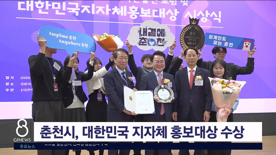 춘천시가 한국미디어영상교육진흥원이 주관한 '2025 대한민국 지자체 홍보대상'에서 정책 부문 대상을 수상했습니다.