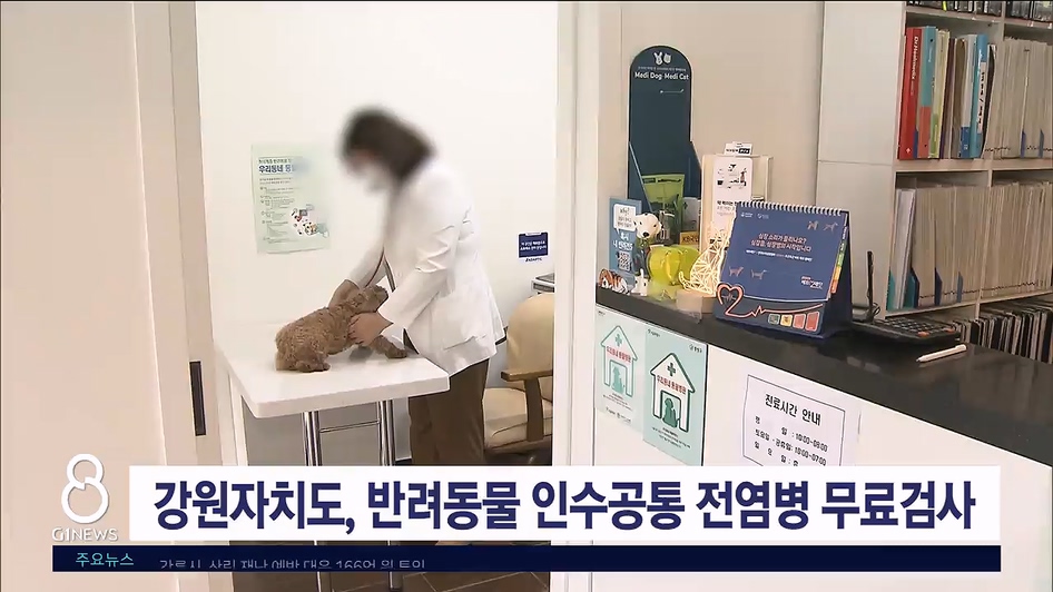 강원자치도동물위생시험소는 다음달부터 11월까지 반려견 3백 마리를 대상으로 인수공통전염병 검사 등을 무료로 실시합니다.