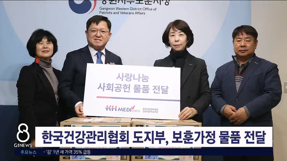 한국건강관리협회 강원자치도지부는 오늘(6일) 강원서부 보훈지청을 찾아 후원 물품을 전달했습니다.