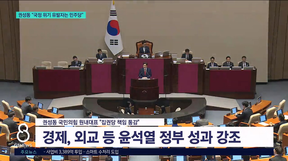 어제(10일) 민주당 이재명 대표에 이어 오늘(11일)은 권성동 국민의힘 원내대표 겸 당대표 권한 대행이 국회 교섭단체 연설을 했습니다.