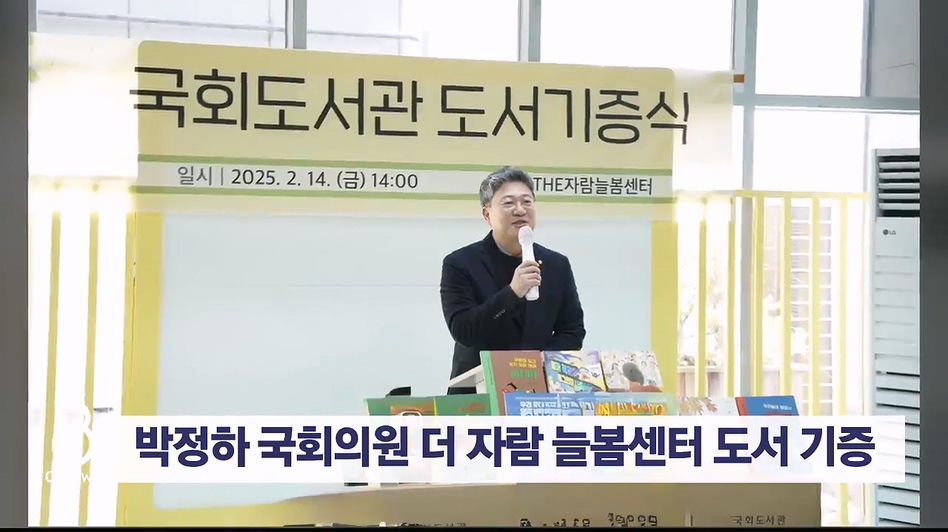 박 의원은 어제(14일) 원주 기업도시에 위치한 '더 자람 늘봄센터'에서 황정근 국회도서관장과 주민들이 참석한 가운데 도서 기증식을 가졌습니다.