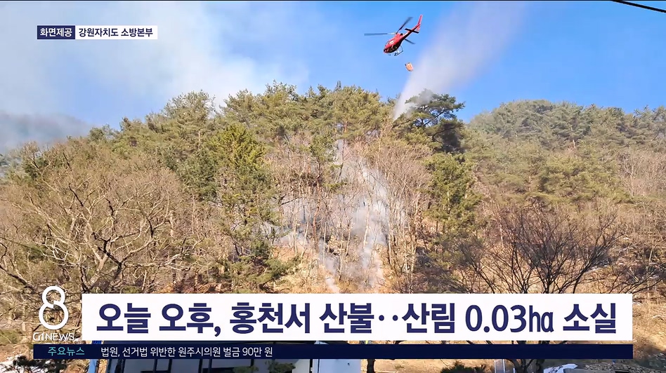 오늘 오후, 홍천서 산불..산림 0.03ha 소실