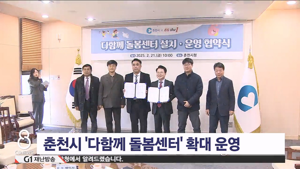 육동한 춘천시장과 춘천 우두이지더원 아파트 입주자대표회의는 오늘(21일) 춘천시청에서 다함께 돌봄센터 설치·운영에 관한 업무협약을 체결했습니다.