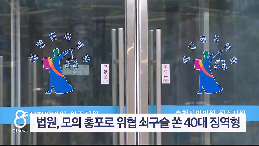 춘천지방법원 원주지원 형사2단독 박현진 부장판사는 총포, 도검, 화약류 등의 안전 관리에 관한 법률 위반, 특수협박, 특수재물손괴 혐의로 기소된 47살 A씨에게 징역 1년을 선고했습니다.