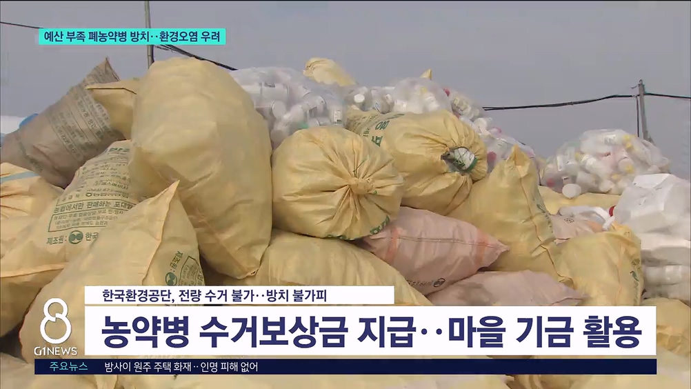 하지만 예산 부족으로 농약병이 방치되게 생겼습니다.