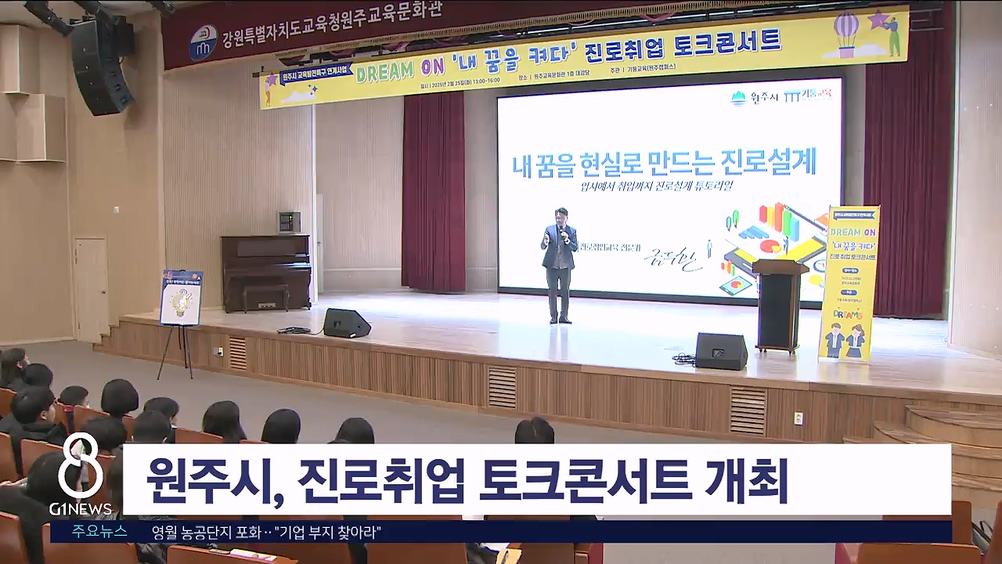 원주시가 교육발전특구 연계 사업의 일환으로 오늘(25일) 원주교육문화관에서 진로취업 토크콘서트를 개최했습니다.