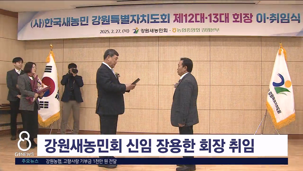 도내 대표 농업인 단체 중 하나인 한국새농민 강원자치도회는 오늘(27일) 강원 농업인 단체회관에서 회장 이‧취임식을 가졌습니다.