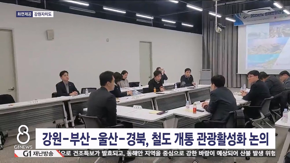 강원자치도와 부산, 울산, 경북 등 4개 시도 관계자들이 오늘(27일) 부산 관광기업지원센터에서 동해선 철도 개통에 따른 관광 활성화 방안을 논의했습니다.
