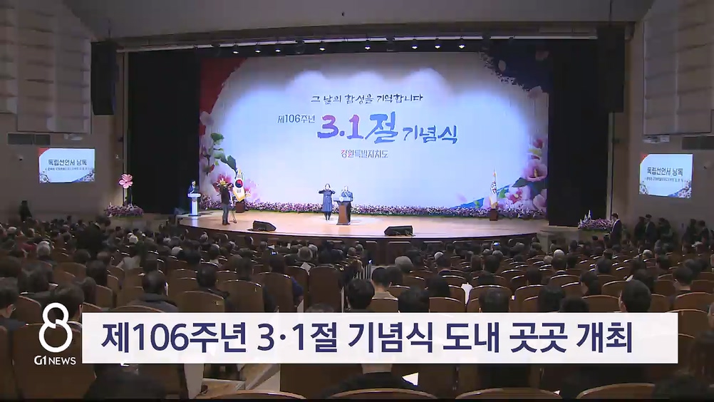 제106주년 3·1절 기념식이 오늘 강원대 백령아트센터에서 개최됐습니다.