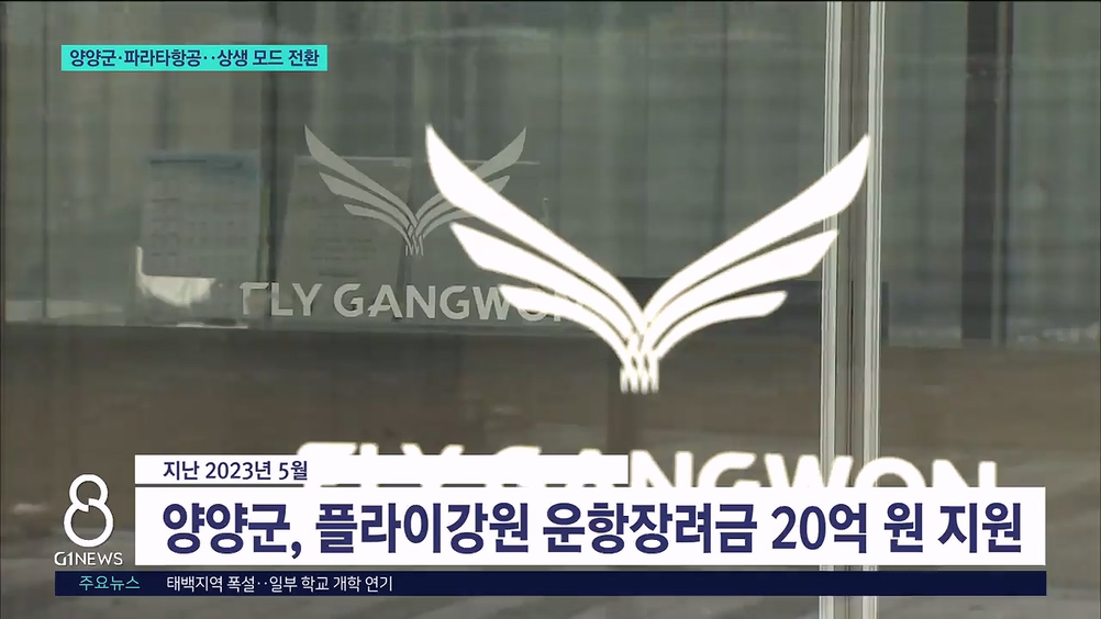 "이에 따라 플라이강원을 인수한 파라타항공은 양양군이 지원한 재정지원금 20억 원에 대해 상환 절차에 돌입하기로 결정했습니다."