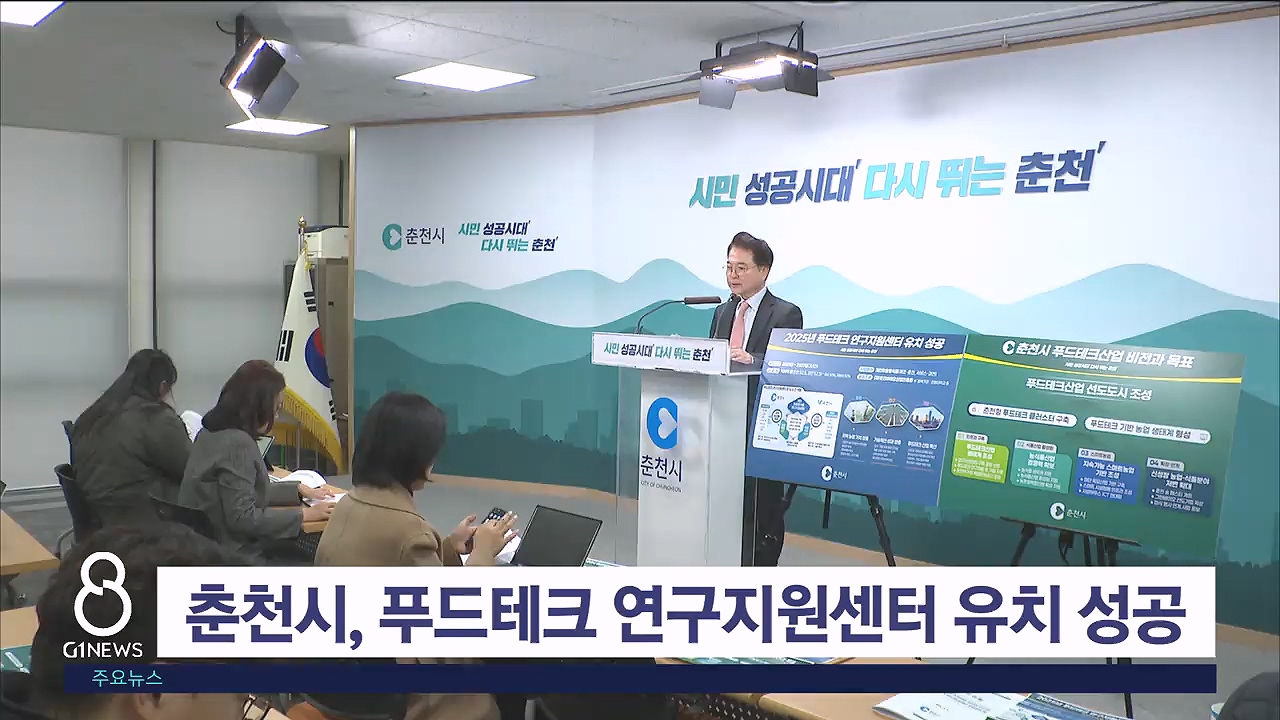 육동한 춘천시장은 오늘(4일) 기자회견을 열고 경기 과천시와 공동으로 정부 푸드테크 연구지원센터 공모 사업에 선정됐다고 밝혔습니다.