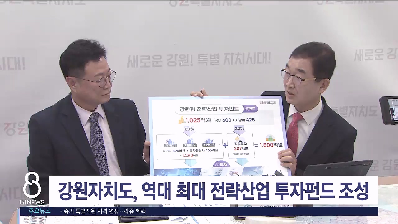 강원자치도가 역대 최대 규모인 1,025억 원의 강원형 전략 산업 투자 모펀드를 조성합니다.