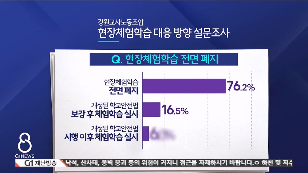 "많은 학교에서 현장 체험 학습으로 인해서 법률적 책임을 질까 교사들이 우려하고 있습니다. 울산과 광주 교육청은 조례를 통해서 현장 체험 학습을 지원하는 방안을 마련하고 있는데요. 현재 강원교육청은 좀 적극적인 노력이 없는 상태라고 생각합니다."