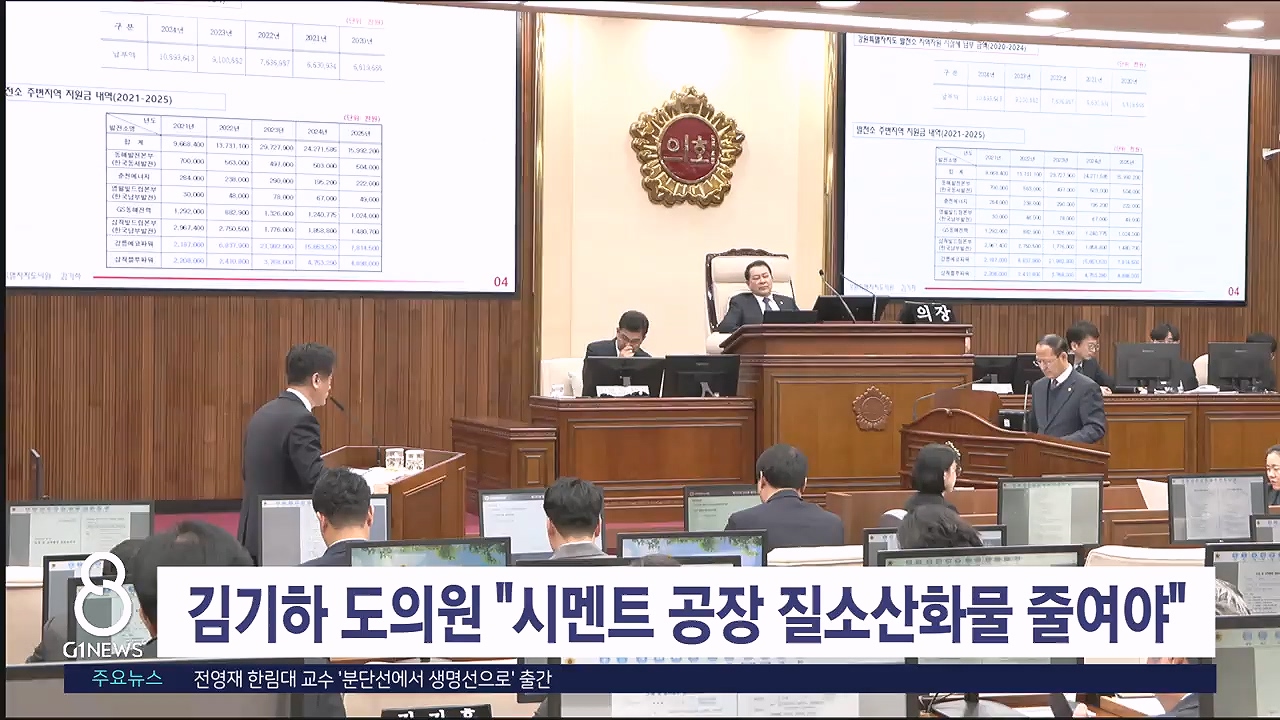김기하 강원자치도의원은 도의회 도정질문을 통해 "동해 지역 시멘트 공장에서 배출하는 질소산화물이 배출 허용 기준을 초과하는 경우가 많다"며