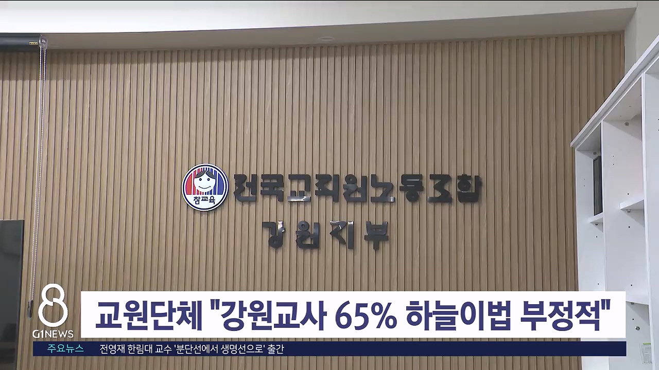 강원지역에 근무하는 교사 10명 중 6명이 '대전 초등학생 사망사건' 관련 입법이 추진 중인 이른바 '하늘이법'에 부정적인 것으로 나타났습니다.