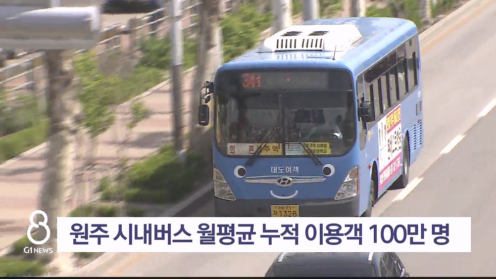 원주지역 시내버스 노선이 개선되면서 월 평균 누적 이용객이 100만 명을 넘어선 것으로 집계됐습니다.