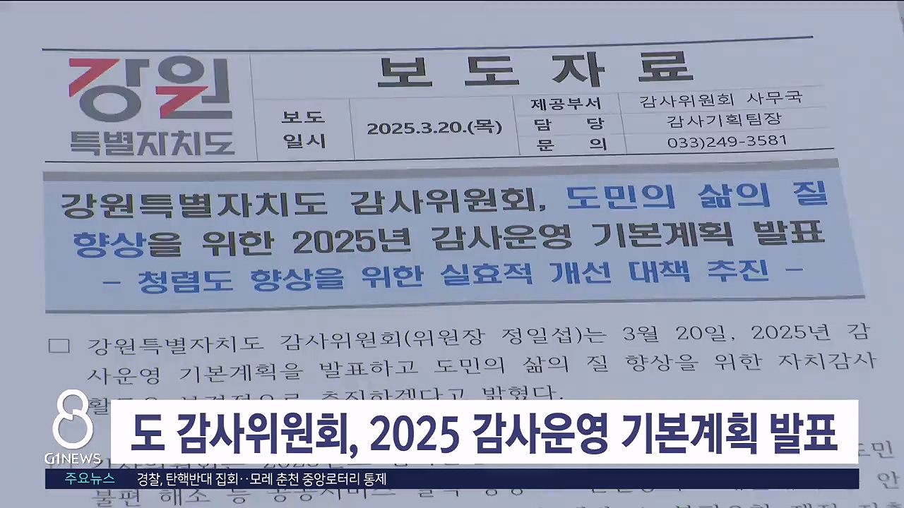 강원자치도 감사위원회가 오늘(20일) 도청 기자실에서 '2025년 감사운영 기본계획'을 발표했습니다.